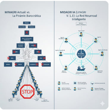 No proponemos una reforma administrativa, sino una Sustitución Tecnológica. El MIDAGRI IA es un “Estado Algorítmico” que reemplaza la discrecionalidad del burócrata por la precisión de la Inteligencia Artificial: